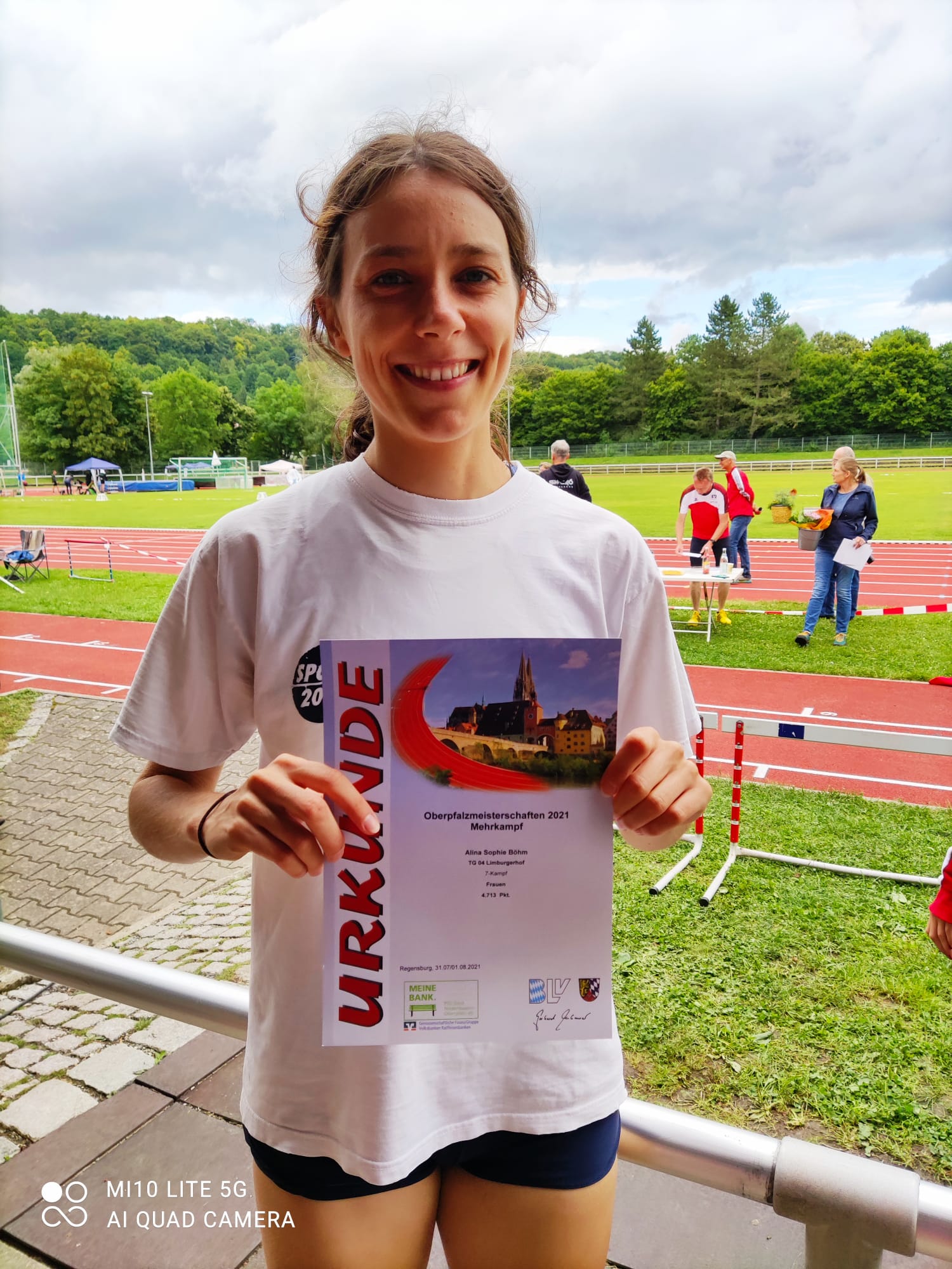Zum Wochenende schnell mal nach Regensburg zum Siebenkampf, da ist schon viel Spaß am Sport im Spiel. Alina Böhm nebst Papa und Trainer haben diese Reise am Wochenende angetreten und kehrten am Sonntag gegen Abend zufrieden zurück. Als Gast bei den Meisterschaften der Oberpfalz trat sie im Stadion an der Donau gegen starke Konkurrenz an und lieferte einen engagierten Wettkampf ab.