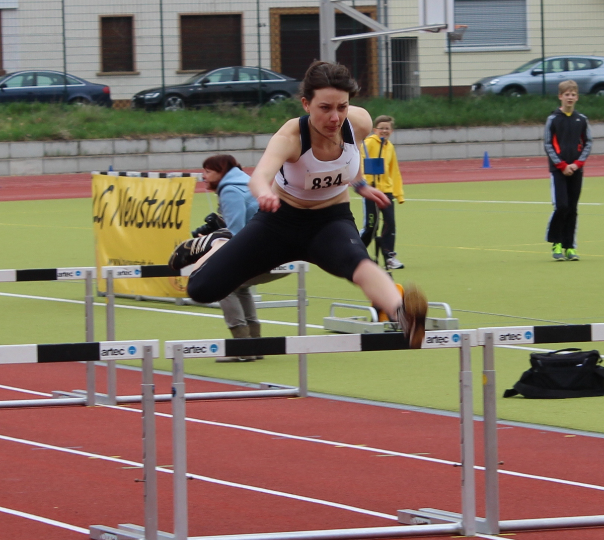Im ersten Wettbewerb galt es auf 100m zehn 84cm hohe Hürden zu überlaufen und dabei möglichst schnell ins Ziel zukommen. Alina gelang dies in 15,53 Sekunden, so schnell wie bisher nie in ihrer sportlichen Laufbahn. Der fünfte Platz war der Lohn in einem Rennen, das von der U18 Weltmeisterin Celina Leffler gewonnen wurde.