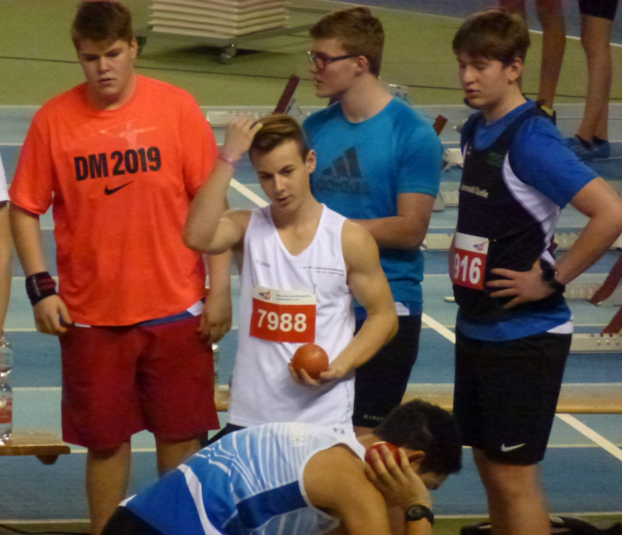 Fynn trat in seiner Paradedisziplin Kugelstoßen an. Nach 2 ungültigen Versuchen musste er sich im entscheidenden dritten Durchgang mit 10,79m begnügen. Im Weitsprung kam er an seine Bestleistung fast heran und hatte mit 4.93m ein gutes Ergebnis. Als 2. Läufer in der 4x200m Staffel hatte er seinen Anteil an der guten Zeit von 1;42,46 sec.