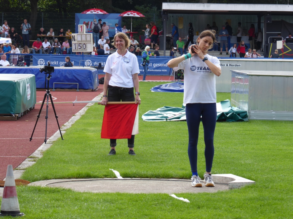 Glänzend aufgelegt zeigte sich die Athletin der TG 04 beim Saisonhöhepunkt der deutschen Mehrkampf Asse in Hannover. 5 persönliche Bestleistungen konnte sie nach 2 Tagen verbuchen. Am ersten Tag lag sie nach 14,40 sek über 100m Hürden und 1,65m im Hochsprung (beides persönliche Bestleistungen) zwischenzeitlich auf Platz 6. Im Kugelstoßen ihrer schwächsten Disziplin reichte es immerhin mit 9,16 m zu einer Saisonbestleistung. Zum Abschluss des 1. Tages war nochmals eine persönliche Bestleistung mit 25,64 sek über 200m fällig.